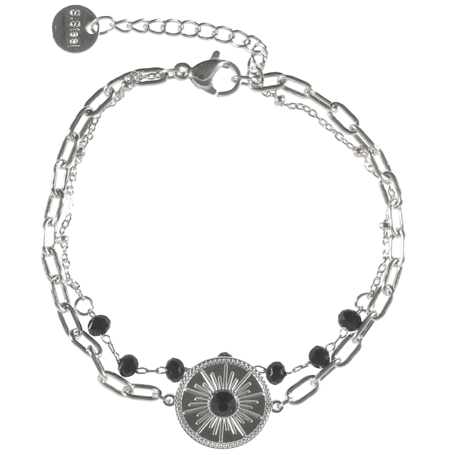 Description Bracelet double rangs composé d'une chaîne en acier argenté avec perles de couleur noire et d'une chaîne en acier argenté avec une pastille ronde aux motifs de rayon surmontée d'une pierre de couleur noire. Fermoir mousqueton avec 3 cm de rallonge. Longueur 16+3 cm [Guide des tailles] Largeur 14 mm Matière(s) Acier , Rocaille . L'acier utilisé dans la bijouterie existe sous plusieurs qualités. Nous utilisons principalement la qualité 316L, qualité qui est utilisée en chirurgie. Cet acier est donc inoxydable et reste très résistant. Fermoir Mousqueton Couleur(s) dominante(s) Argenté , Noir Public Adolescent , Adulte . Genre Femme , Fille . Saison Indémodable . Cliquez sur une matière, un thème, une couleur ou une collection pour voir tous les articles associés.