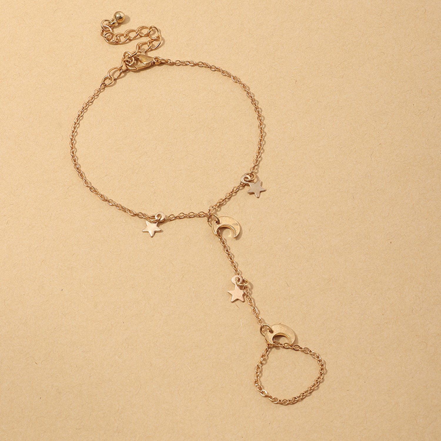 Description Bracelet bague avec pampilles étoiles et croissants de lune en métal doré. Fermoir mousqueton avec 5 cm de rallonge. Cliquez sur une matière, un thème, une couleur ou une collection pour voir tous les articles associés.