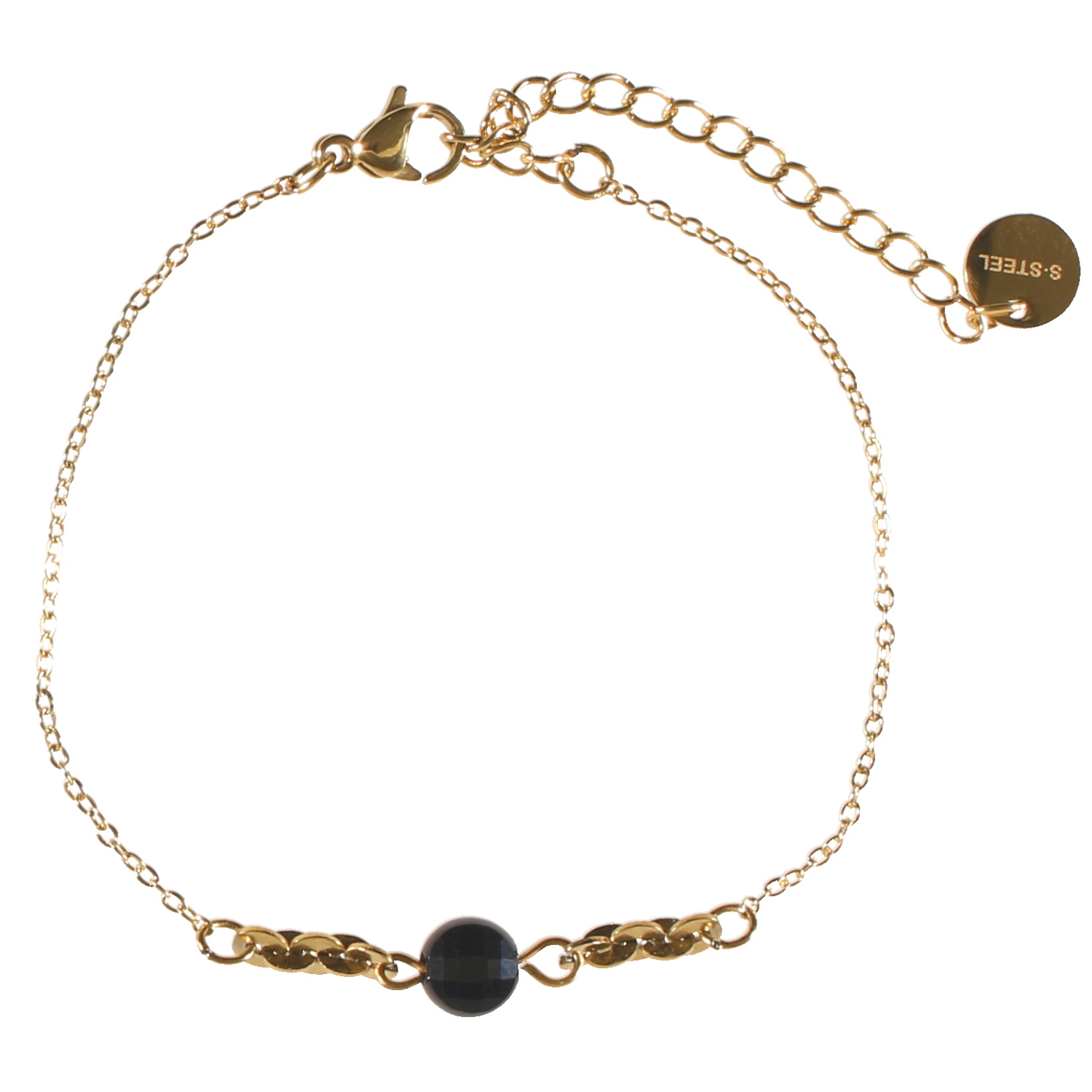Description Bracelet composé d'une chaîne en acier doré et d'une pierre ronde de couleur noire. Fermoir mousqueton avec 5 cm de rallonge. Longueur 16+5 cm [Guide des tailles] Largeur 6 mm Matière(s) Acier , Rocaille . L'acier utilisé dans la bijouterie existe sous plusieurs qualités. Nous utilisons principalement la qualité 316L, qualité qui est utilisée en chirurgie. Cet acier est donc inoxydable et reste très résistant. Fermoir Mousqueton Couleur(s) dominante(s) Doré , Noir Public Adolescent , Adulte . Genre Femme , Fille . Saison Indémodable . Cliquez sur une matière, un thème, une couleur ou une collection pour voir tous les articles associés.