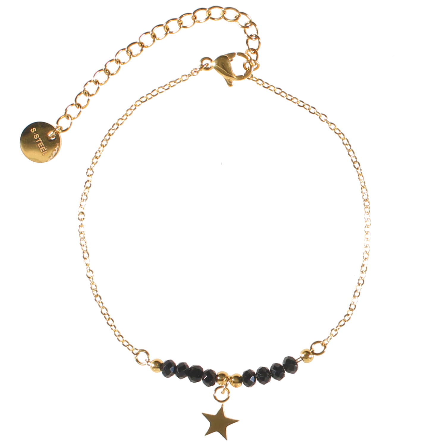 Description Bracelet composé d'une chaîne en acier doré, de perles de couleur noire et d'une étoile en acier doré. Fermoir mousqueton avec 5 cm de rallonge. Longueur 15+5 cm [Guide des tailles] Largeur 11 mm Matière(s) Acier , Rocaille . L'acier utilisé dans la bijouterie existe sous plusieurs qualités. Nous utilisons principalement la qualité 316L, qualité qui est utilisée en chirurgie. Cet acier est donc inoxydable et reste très résistant. Fermoir Mousqueton Couleur(s) dominante(s) Doré , Noir Public Adolescent , Adulte . Genre Femme , Fille . Saison Indémodable . Thème(s) Nature . Cliquez sur une matière, un thème, une couleur ou une collection pour voir tous les articles associés.