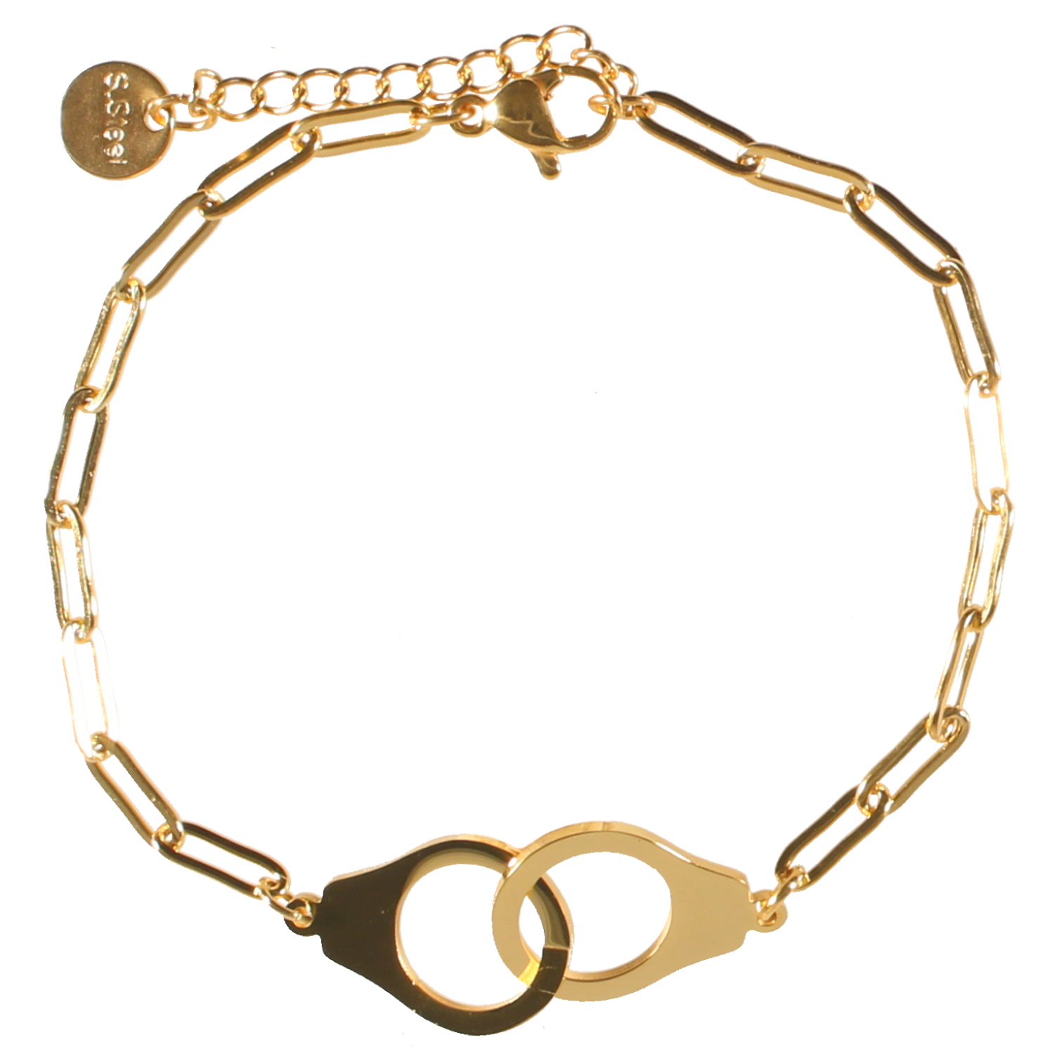 Description Bracelet composé d'une chaîne avec une paire de menottes en acier doré. Fermoir mousqueton avec 3 cm de rallonge. Longueur 17+3 cm [Guide des tailles] Largeur 13 mm Matière(s) Acier . L'acier utilisé dans la bijouterie existe sous plusieurs qualités. Nous utilisons principalement la qualité 316L, qualité qui est utilisée en chirurgie. Cet acier est donc inoxydable et reste très résistant. Fermoir Mousqueton Couleur(s) dominante(s) Doré Public Adolescent , Adulte . Genre Femme , Fille . Saison Indémodable . Cliquez sur une matière, un thème, une couleur ou une collection pour voir tous les articles associés.