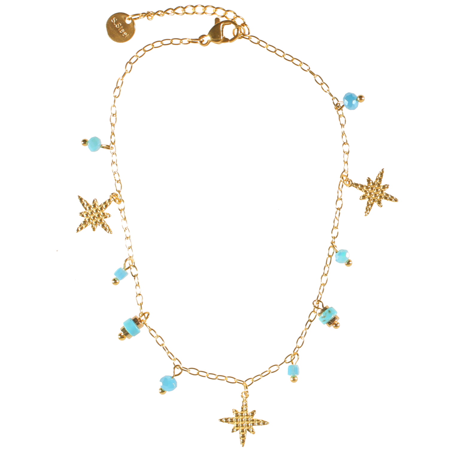 Description Bracelet chaîne de cheville composé d'une chaîne en acier doré, de pampilles de perles de couleur turquoise et 3 pendants étoiles en acier doré. Fermoir mousqueton avec 3 cm de rallonge. Longueur 23+3 cm [Guide des tailles] Largeur 15 mm Matière(s) Acier , Rocaille . L'acier utilisé dans la bijouterie existe sous plusieurs qualités. Nous utilisons principalement la qualité 316L, qualité qui est utilisée en chirurgie. Cet acier est donc inoxydable et reste très résistant. Fermoir Mousqueton Couleur(s) dominante(s) Bleu , Doré Public Adolescent , Adulte . Genre Femme , Fille . Saison Indémodable . Thème(s) Nature . Cliquez sur une matière, un thème, une couleur ou une collection pour voir tous les articles associés.
