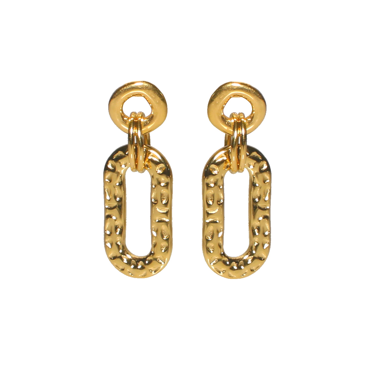 Description Boucles d'oreilles pendantes composées d'une puce ronde et d'un maillon martelé en acier doré. Largeur 10 mm Hauteur 30 mm Matière(s) Acier . L'acier utilisé dans la bijouterie existe sous plusieurs qualités. Nous utilisons principalement la qualité 316L, qualité qui est utilisée en chirurgie. Cet acier est donc inoxydable et reste très résistant. Fermoir Tiges poussettes Couleur(s) dominante(s) Doré Public Adolescent , Adulte . Genre Femme , Fille . Saison Indémodable . Cliquez sur une matière, un thème, une couleur ou une collection pour voir tous les articles associés.