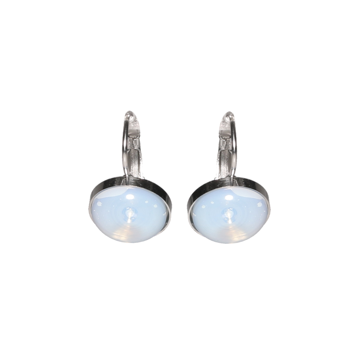 Description Boucles d'oreilles dormeuses en acier argenté surmontées d'un cabochon en pierre d'opale d'imitation. Cliquez sur une matière, un thème, une couleur ou une collection pour voir tous les articles associés.