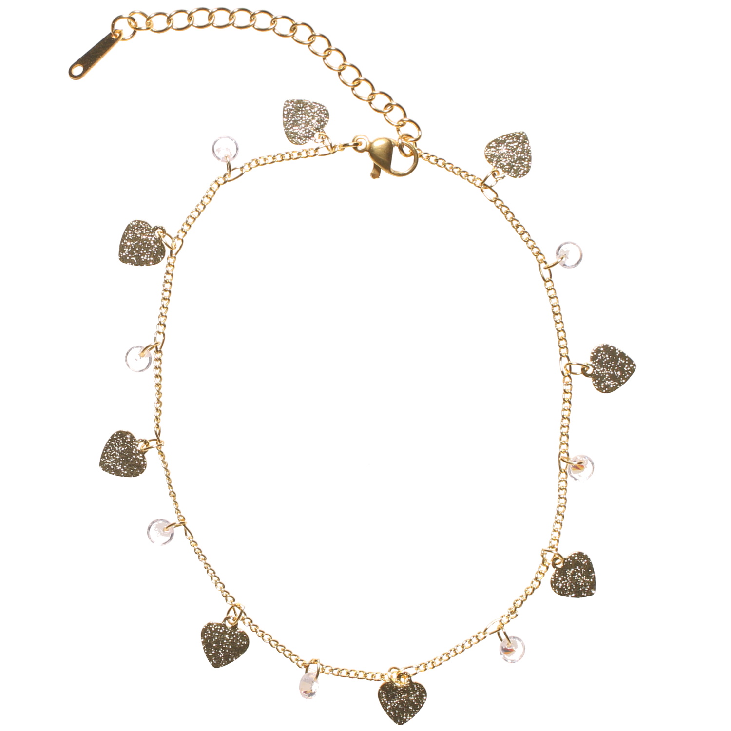 Description Bracelet chaîne de cheville composé d'une chaîne avec pendants cœurs en acier doré et de pampilles cristaux transparents. Fermoir mousqueton avec 5 cm de rallonge. Longueur 22+5 cm [Guide des tailles] Largeur 10 mm Matière(s) Acier , Verre . L'acier utilisé dans la bijouterie existe sous plusieurs qualités. Nous utilisons principalement la qualité 316L, qualité qui est utilisée en chirurgie. Cet acier est donc inoxydable et reste très résistant. Fermoir Mousqueton Couleur(s) dominante(s) Doré Public Adolescent , Adulte . Genre Femme , Fille . Saison Indémodable . Thème(s) Amour . Cliquez sur une matière, un thème, une couleur ou une collection pour voir tous les articles associés.