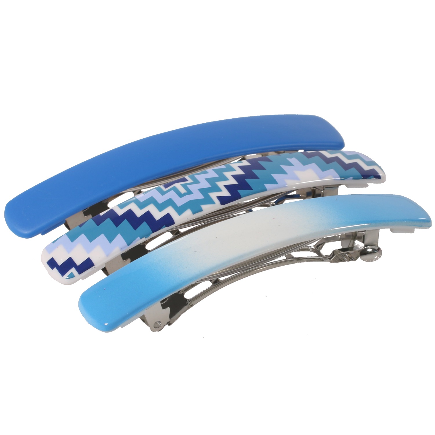 Lot de 3 barrettes en métal et plastique.