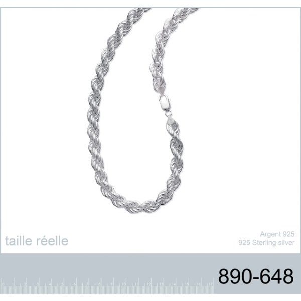 Description Chaîne en argent 925/000. Maille corde. Longueur 50 cm [Guide des tailles] Largeur 10 mm Maille Corde ronde Matière(s) Argent 925 . Les bijoux en argent que nous vous proposons sont faits d'argent 925/000. C'est-à-dire que chaque gramme de métal est composé de 92.5% d'argent pur et de 7.5 % d'autres métaux (essentiellement du cuivre). En effet, sous sa forme pure (soit 100%), l'argent est trop mou et ne peut être suffisamment rigide pour tenir sous forme de bijou. Nous le mêlons donc à d'autres métaux. Nous apposons un poinçon 925 sur tous nos bijoux afin de vous garantir que chaque création est bien en argent 925. Poids d'argent 61,98 gramme(s) Fermoir Mousqueton Couleur(s) dominante(s) Argenté Public Adulte . Genre Femme . Saison Indémodable . Rayon en magasin T100 Cliquez sur une matière, un thème, une couleur ou une collection pour voir tous les articles associés.