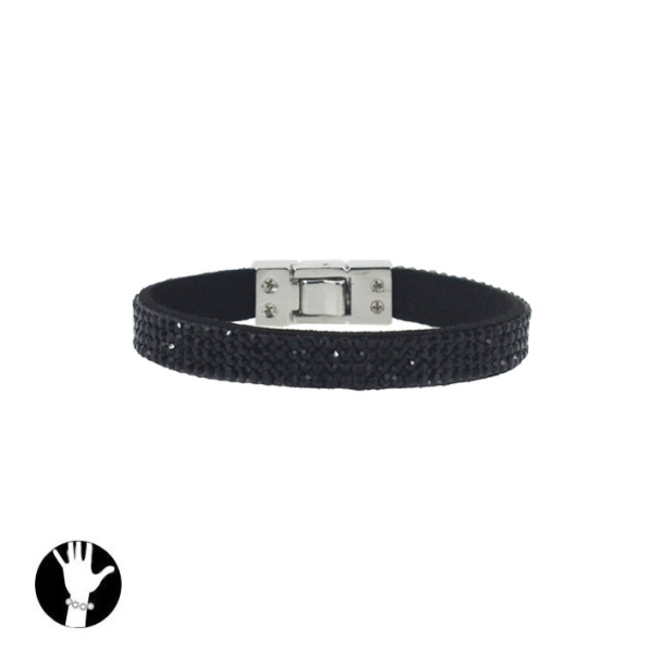 Bracelet fantaisie en métal argenté et strass.