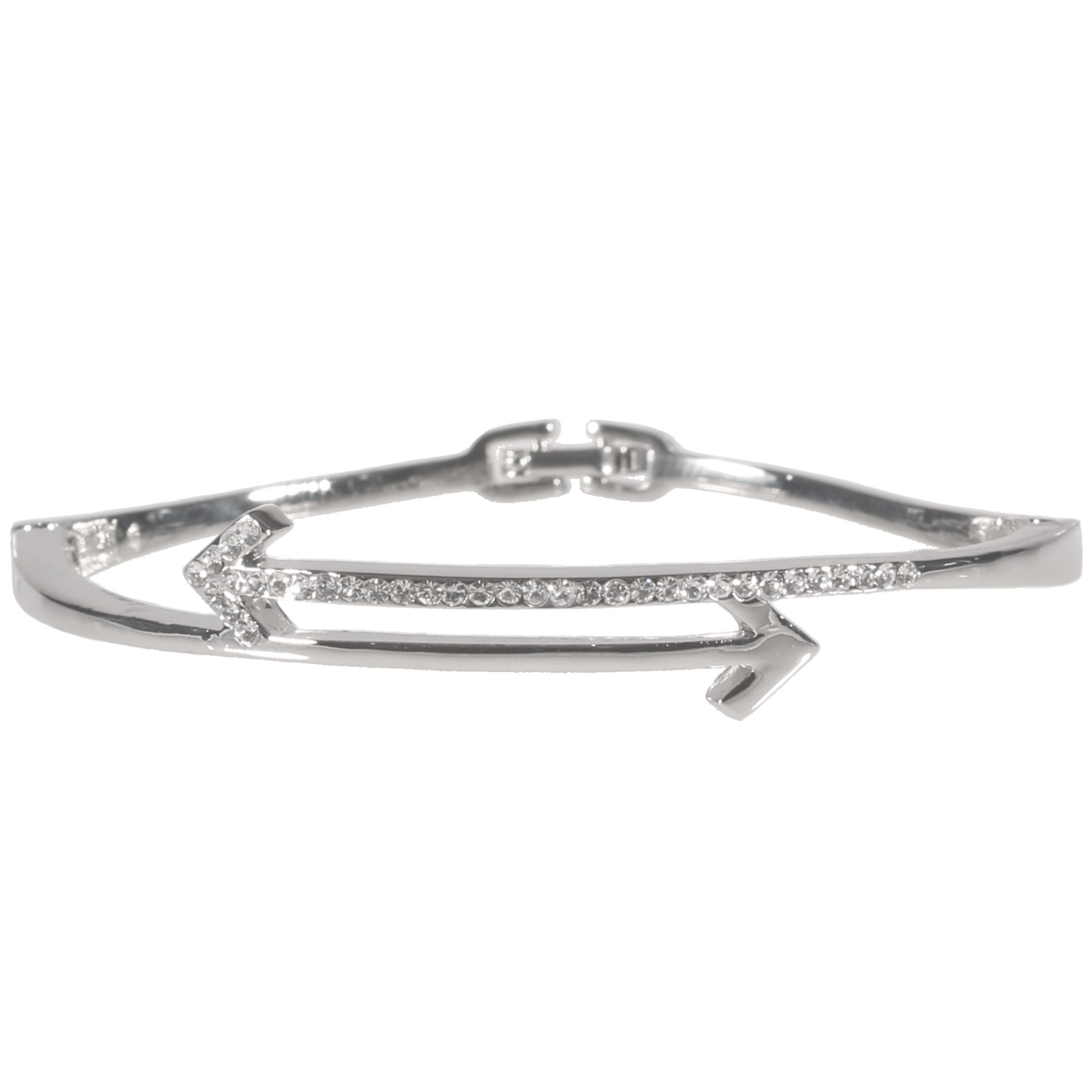 Bracelet jonc fantaisie flèches en métal argenté et strass en couleur cristal.
