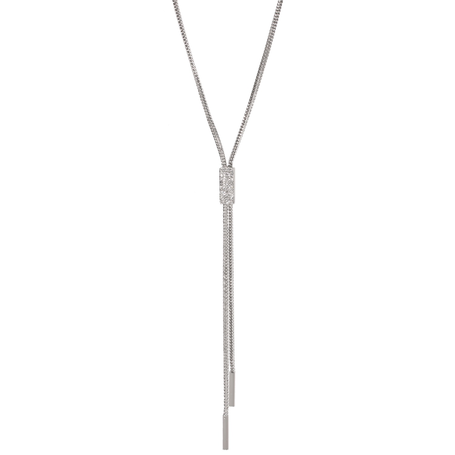 Description Collier sautoir fantaisie en métal argenté et strass de couleur cristal. Cliquez sur une matière, un thème, une couleur ou une collection pour voir tous les articles associés.