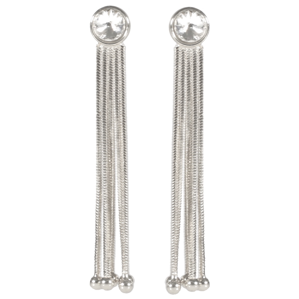 Description Boucles d'oreilles fantaisie pendantes en métal argenté et cristaux sertis clos. Cliquez sur une matière, un thème, une couleur ou une collection pour voir tous les articles associés.