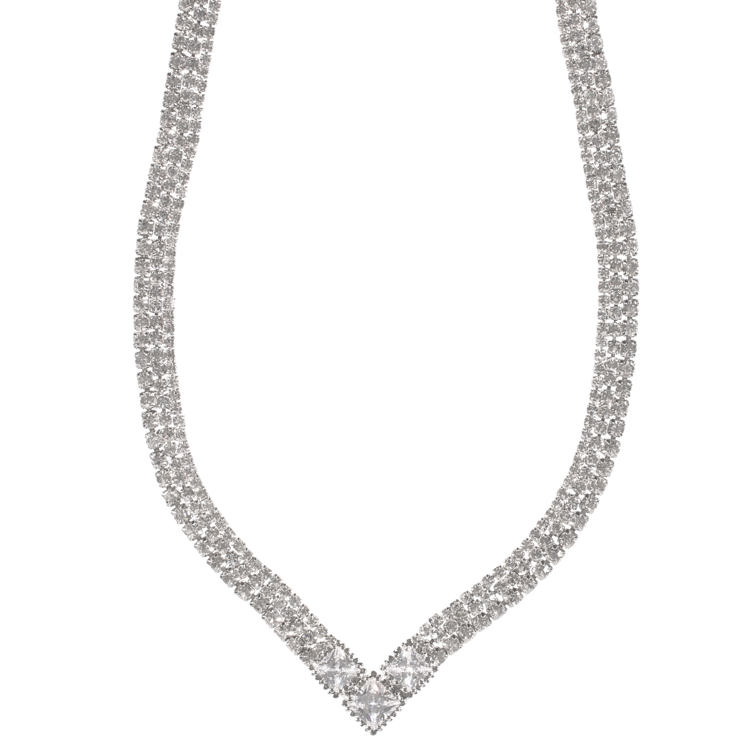 Description Collier en métal argenté et strass de couleur cristal. Cliquez sur une matière, un thème, une couleur ou une collection pour voir tous les articles associés.