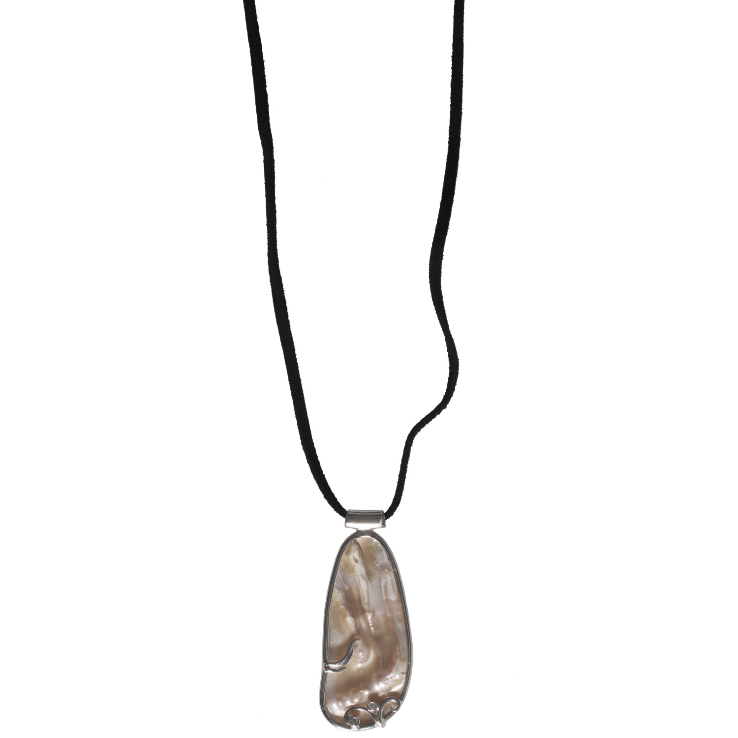 Collier avec cordon en suédine et pendentif en argent 925/000, nacre et oxydes de zirconium.