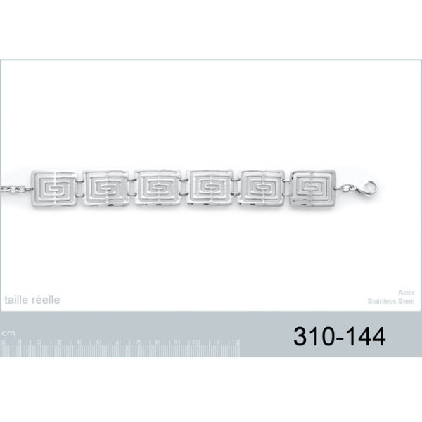 Description Bracelet en acier. Longueur 19 cm [Guide des tailles] Largeur 19 mm Matière(s) Acier . L'acier utilisé dans la bijouterie existe sous plusieurs qualités. Nous utilisons principalement la qualité 316L, qualité qui est utilisée en chirurgie. Cet acier est donc inoxydable et reste très résistant. Fermoir Mousqueton Couleur(s) dominante(s) Argenté Public Adulte . Genre Femme . Saison Indémodable . Rayon en magasin T64 Cliquez sur une matière, un thème, une couleur ou une collection pour voir tous les articles associés.