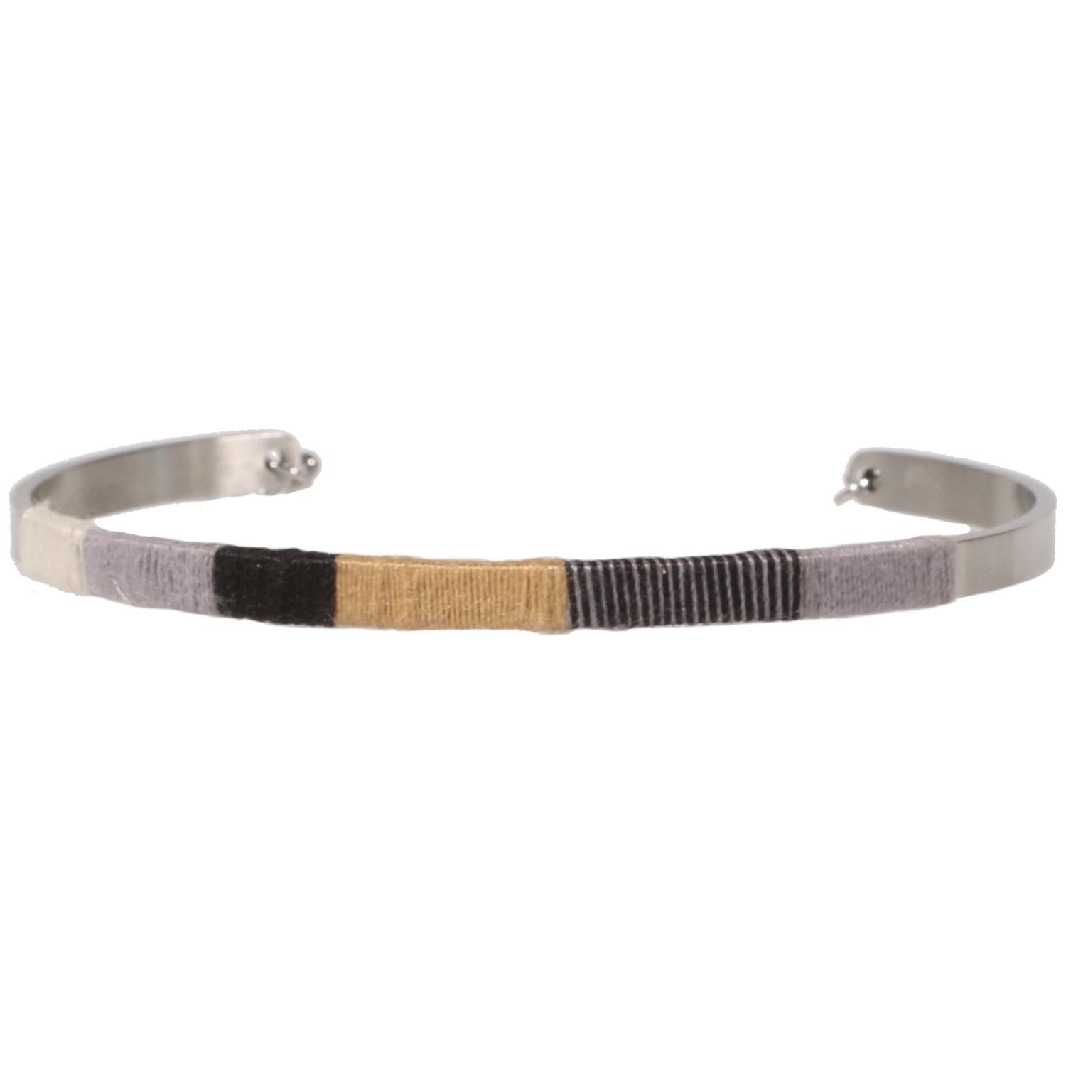 Bracelet jonc rigide en acier argenté et textile.