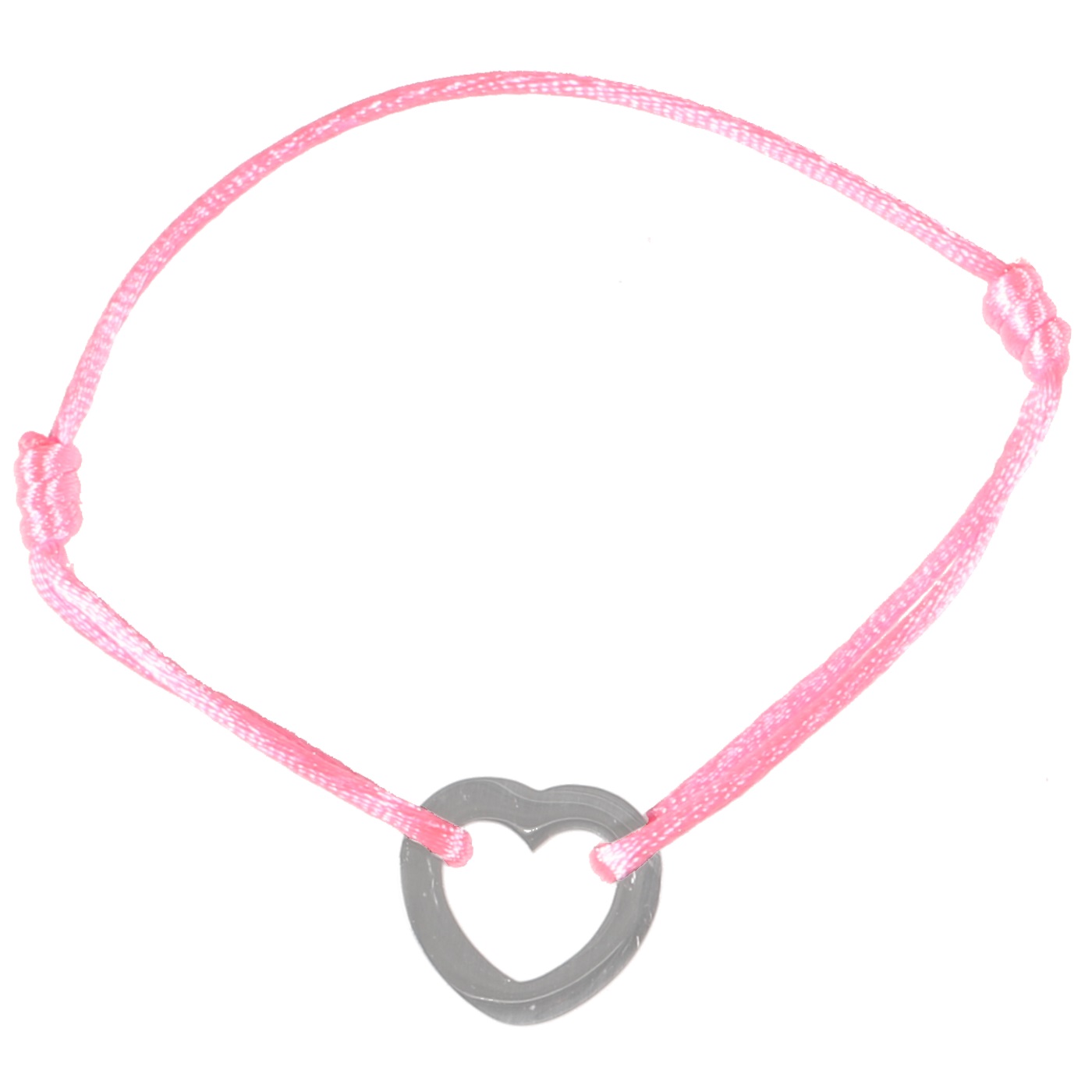 Bracelet Cœur en acier et textile. Coeur Cordon  Adolescent Adulte Femme Fille Indémodable