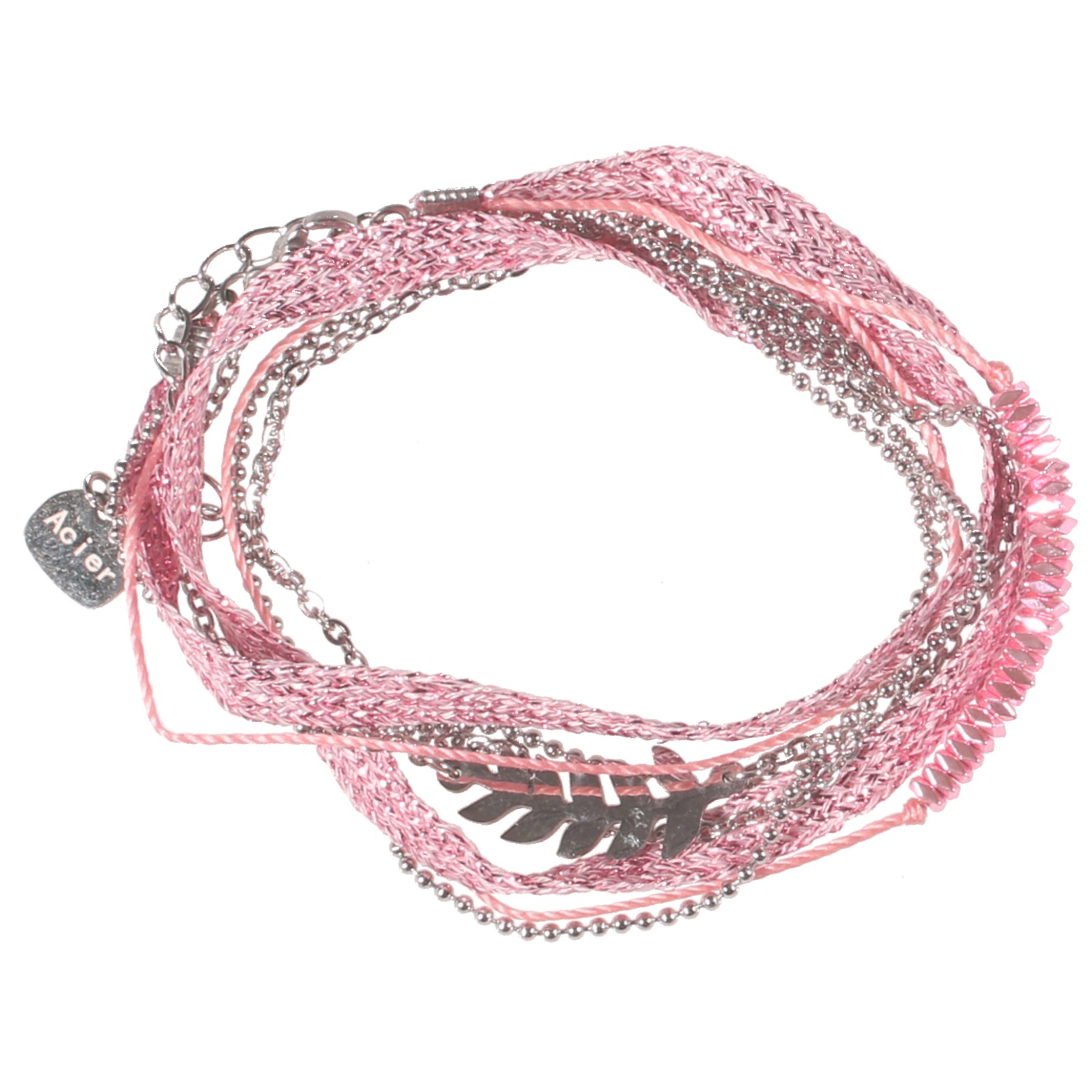 Bracelet Laurier en acier et textile.<br/>4 rangs.<br/>2 tours. Laurier Multi tours Multirangs  Adolescent Adulte Femme Fille Indémodable
