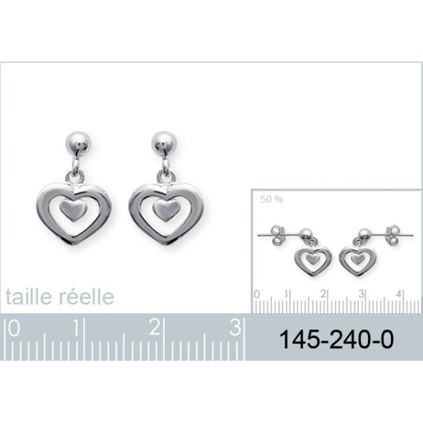 Description Boucles d'oreilles en argent 925/000. Fermoir tige/poussette. Coeurs. Largeur 9 mm Hauteur 13 mm Matière(s) Argent 925 . Les bijoux en argent que nous vous proposons sont faits d'argent 925/000. C'est-à-dire que chaque gramme de métal est composé de 92.5% d'argent pur et de 7.5 % d'autres métaux (essentiellement du cuivre). En effet, sous sa forme pure (soit 100%), l'argent est trop mou et ne peut être suffisamment rigide pour tenir sous forme de bijou. Nous le mêlons donc à d'autres métaux. Nous apposons un poinçon 925 sur tous nos bijoux afin de vous garantir que chaque création est bien en argent 925. Poids d'argent 1,96 gramme(s) Fermoir Tiges poussettes Couleur(s) dominante(s) Argenté Public Adulte . Genre Femme . Saison Indémodable . Thème(s) Amour . Cliquez sur une matière, un thème, une couleur ou une collection pour voir tous les articles associés.