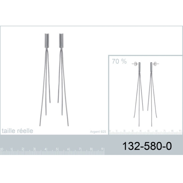 Description Boucles d'oreilles en argent 925/000. Largeur 1 mm Hauteur 57/67/77 mm Matière(s) Argent 925 . Les bijoux en argent que nous vous proposons sont faits d'argent 925/000. C'est-à-dire que chaque gramme de métal est composé de 92.5% d'argent pur et de 7.5 % d'autres métaux (essentiellement du cuivre). En effet, sous sa forme pure (soit 100%), l'argent est trop mou et ne peut être suffisamment rigide pour tenir sous forme de bijou. Nous le mêlons donc à d'autres métaux. Nous apposons un poinçon 925 sur tous nos bijoux afin de vous garantir que chaque création est bien en argent 925. Poids d'argent 3,24 gramme(s) Fermoir Tiges poussettes Couleur(s) dominante(s) Argenté Public Adulte . Genre Femme . Saison Indémodable . Cliquez sur une matière, un thème, une couleur ou une collection pour voir tous les articles associés.