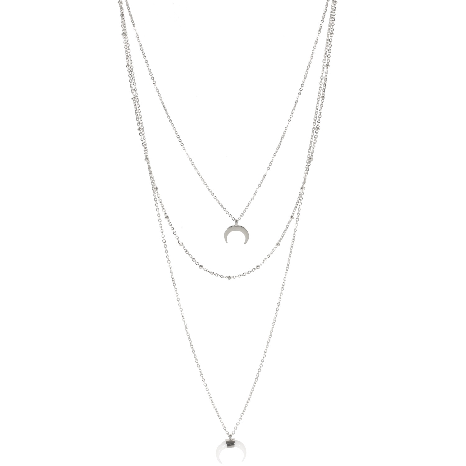 Description Collier triple rangs composé d'un collier de 38 cm de long avec pendentif croissant en acier argenté, un collier de 42 cm de long en acier argenté ainsi qu'un collier de 60 cm de long en acier argenté et pendentif croissant en matière synthétique. L'ensemble peut se régler jusqu'à 7 cm. Longueur 38+7 cm [Guide des tailles] Matière(s) Acier , Plastique . L'acier utilisé dans la bijouterie existe sous plusieurs qualités. Nous utilisons principalement la qualité 316L, qualité qui est utilisée en chirurgie. Cet acier est donc inoxydable et reste très résistant. Fermoir Mousqueton À noter Pendentif croissant 12x10 mm et pendentif croissant 15x15 mm Couleur(s) dominante(s) Argenté , Blanc Public Adolescent , Adulte . Genre Femme , Fille . Saison Indémodable . Collection Myriade Cliquez sur une matière, un thème, une couleur ou une collection pour voir tous les articles associés.