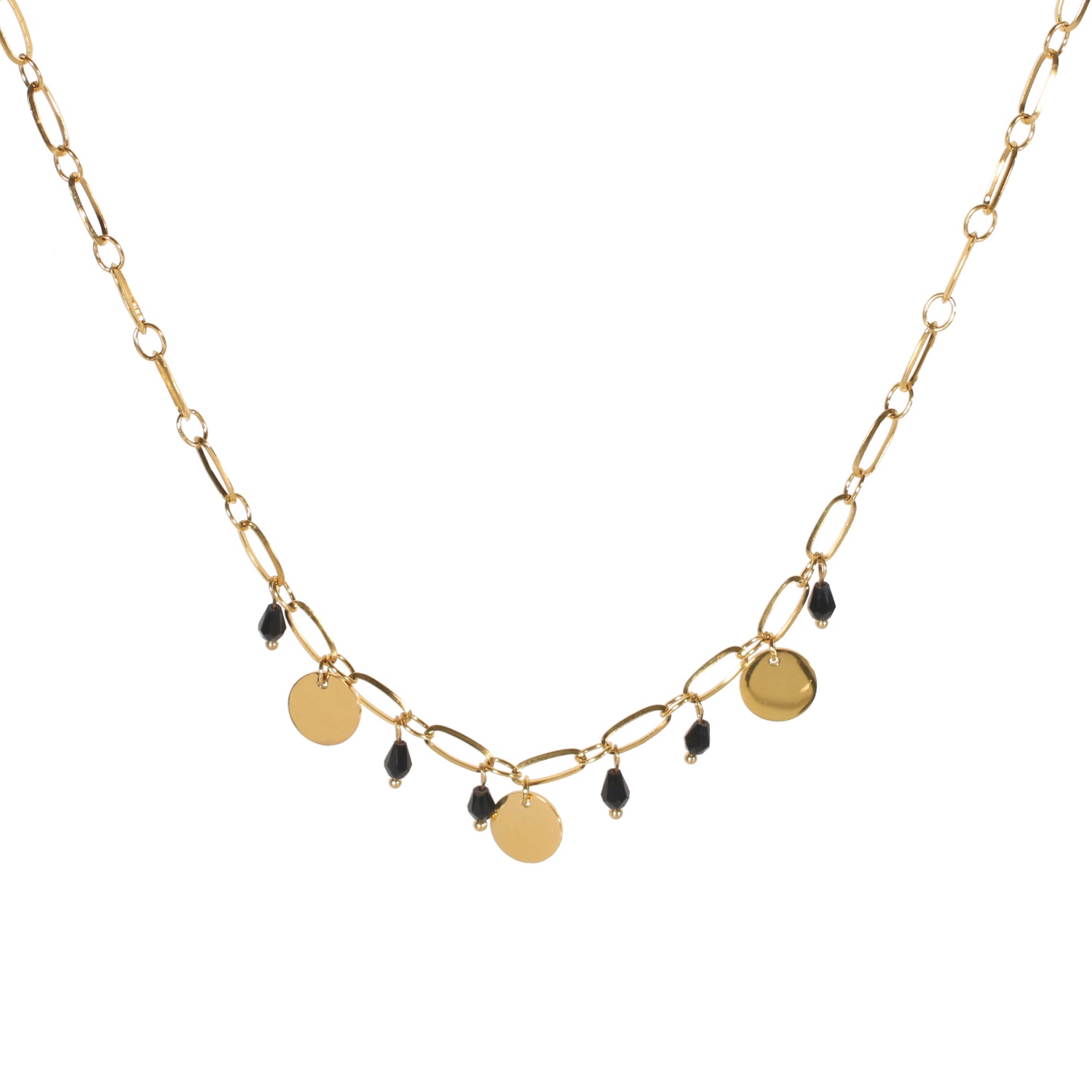 Description Collier composé de pendants pastilles lisse en acier doré et perles en forme de goutte de couleur noire. Fermoir mousqueton avec 5 cm de rallonge pour l'adapter à votre envie. Longueur 38+5 cm [Guide des tailles] Largeur 10 mm Matière(s) Acier , Rocaille . L'acier utilisé dans la bijouterie existe sous plusieurs qualités. Nous utilisons principalement la qualité 316L, qualité qui est utilisée en chirurgie. Cet acier est donc inoxydable et reste très résistant. Fermoir Mousqueton Couleur(s) dominante(s) Doré , Noir Public Adolescent , Adulte . Genre Femme , Fille . Saison Indémodable . Cliquez sur une matière, un thème, une couleur ou une collection pour voir tous les articles associés.