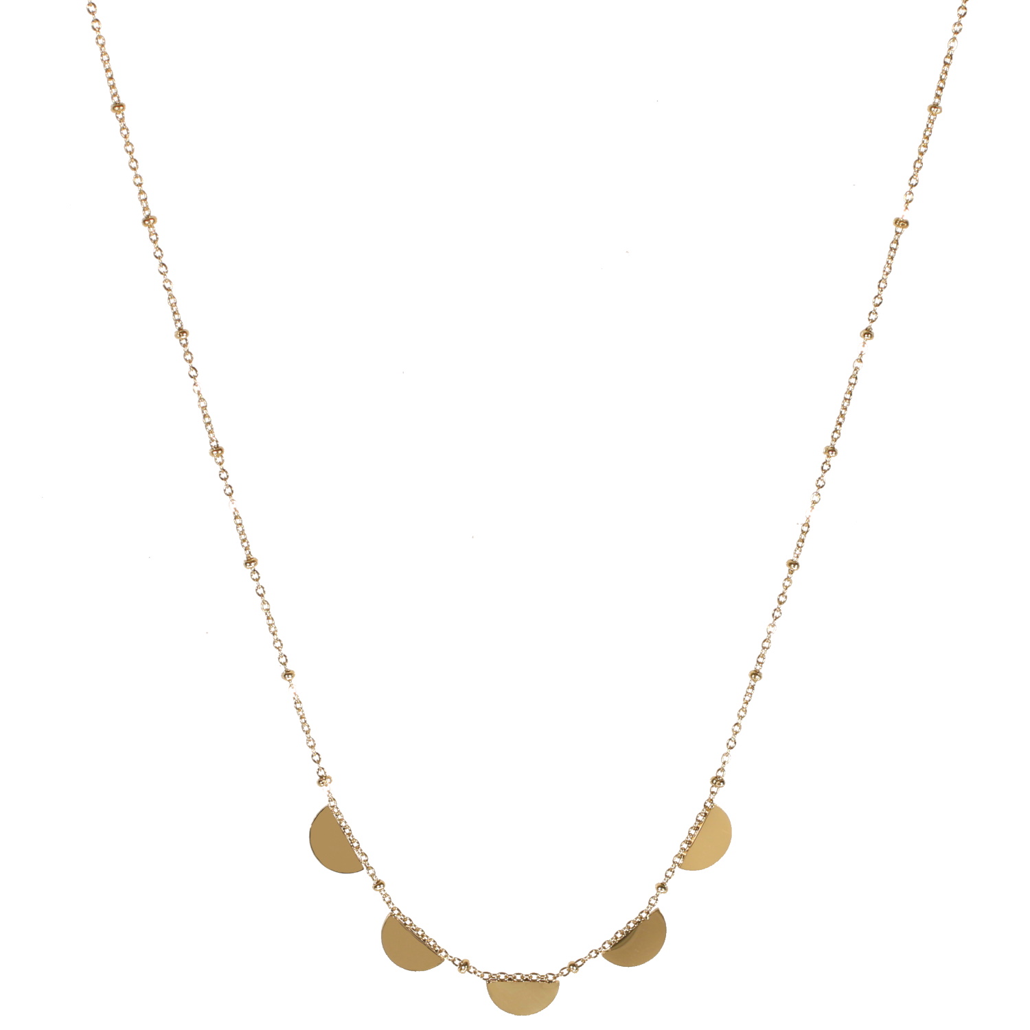 Description Collier composé d'une chaîne avec pampilles demi pastilles rondes lisses en acier doré. Fermoir mousqueton avec 5 cm de rallonge. Longueur 41+5 cm [Guide des tailles] Largeur 6 mm Matière(s) Acier . L'acier utilisé dans la bijouterie existe sous plusieurs qualités. Nous utilisons principalement la qualité 316L, qualité qui est utilisée en chirurgie. Cet acier est donc inoxydable et reste très résistant. Fermoir Mousqueton Couleur(s) dominante(s) Doré Public Adolescent , Adulte . Genre Femme , Fille . Saison Indémodable . Cliquez sur une matière, un thème, une couleur ou une collection pour voir tous les articles associés.