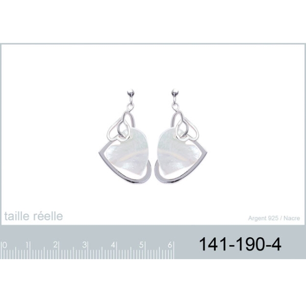 Boucles d'oreilles en argent 925/000 et nacre. Coeur  Adulte Amour Femme Indémodable