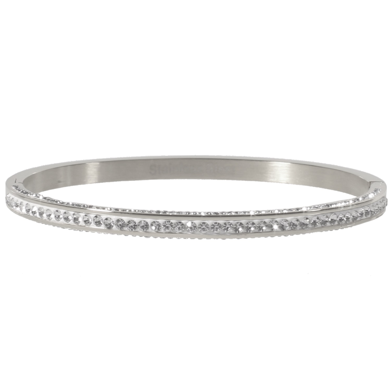 Description Bracelet jonc rigide en acier argenté et cristaux synthétiques. Largeur 4 mm Diamètre 58 mm [Guide des tailles] Matière(s) Acier , Verre . L'acier utilisé dans la bijouterie existe sous plusieurs qualités. Nous utilisons principalement la qualité 316L, qualité qui est utilisée en chirurgie. Cet acier est donc inoxydable et reste très résistant. Fermoir Charnière Couleur(s) dominante(s) Argenté Public Adolescent , Adulte . Genre Femme , Fille . Saison Indémodable . Cliquez sur une matière, un thème, une couleur ou une collection pour voir tous les articles associés.