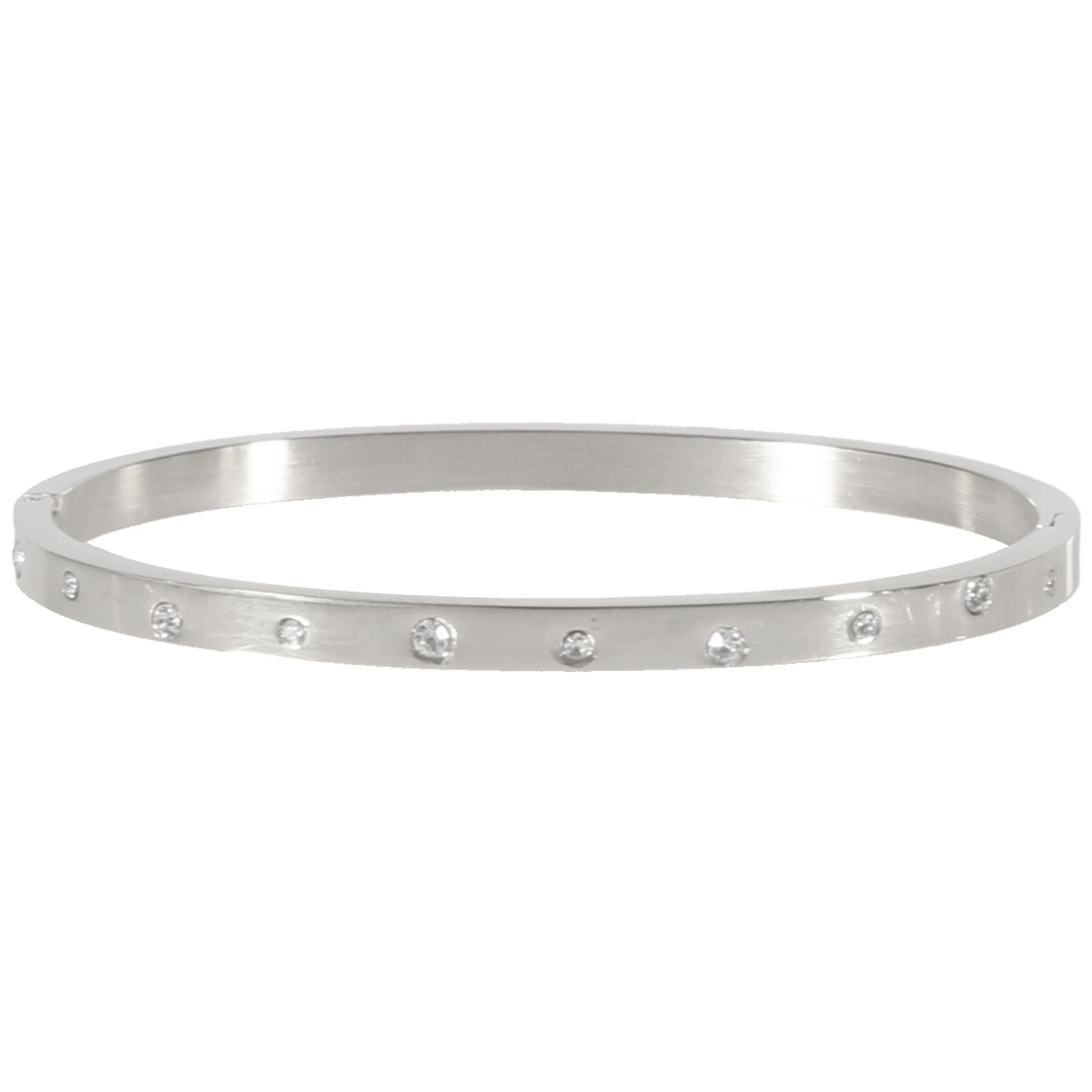 Description Bracelet jonc rigide en acier argenté et cristaux synthétiques. Largeur 4 mm Diamètre 60 mm [Guide des tailles] Matière(s) Acier , Verre . L'acier utilisé dans la bijouterie existe sous plusieurs qualités. Nous utilisons principalement la qualité 316L, qualité qui est utilisée en chirurgie. Cet acier est donc inoxydable et reste très résistant. Fermoir Charnière Couleur(s) dominante(s) Argenté Public Adolescent , Adulte . Genre Femme , Fille . Saison Indémodable . Cliquez sur une matière, un thème, une couleur ou une collection pour voir tous les articles associés.