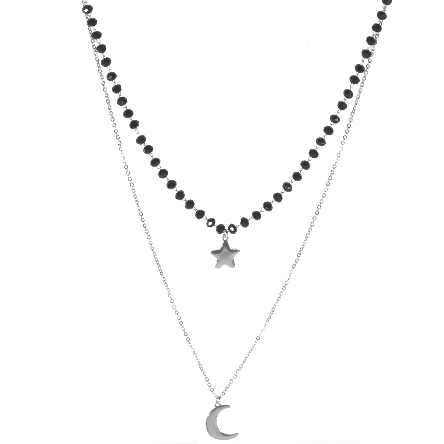 Description Collier multi rangs avec pendentifs étoile et croissant de lune en acier argenté et perles de couleur. 2 rangs. Longueur 40+5 cm [Guide des tailles] Matière(s) Acier , Verre . L'acier utilisé dans la bijouterie existe sous plusieurs qualités. Nous utilisons principalement la qualité 316L, qualité qui est utilisée en chirurgie. Cet acier est donc inoxydable et reste très résistant. Fermoir Mousqueton À noter Pendentifs croissant de lune 15 mm x 10 mm et étoile 10 mm x 10 mm Couleur(s) dominante(s) Argenté , Noir Public Adolescent , Adulte . Genre Femme , Fille . Saison Indémodable . Thème(s) Nature . Cliquez sur une matière, un thème, une couleur ou une collection pour voir tous les articles associés.