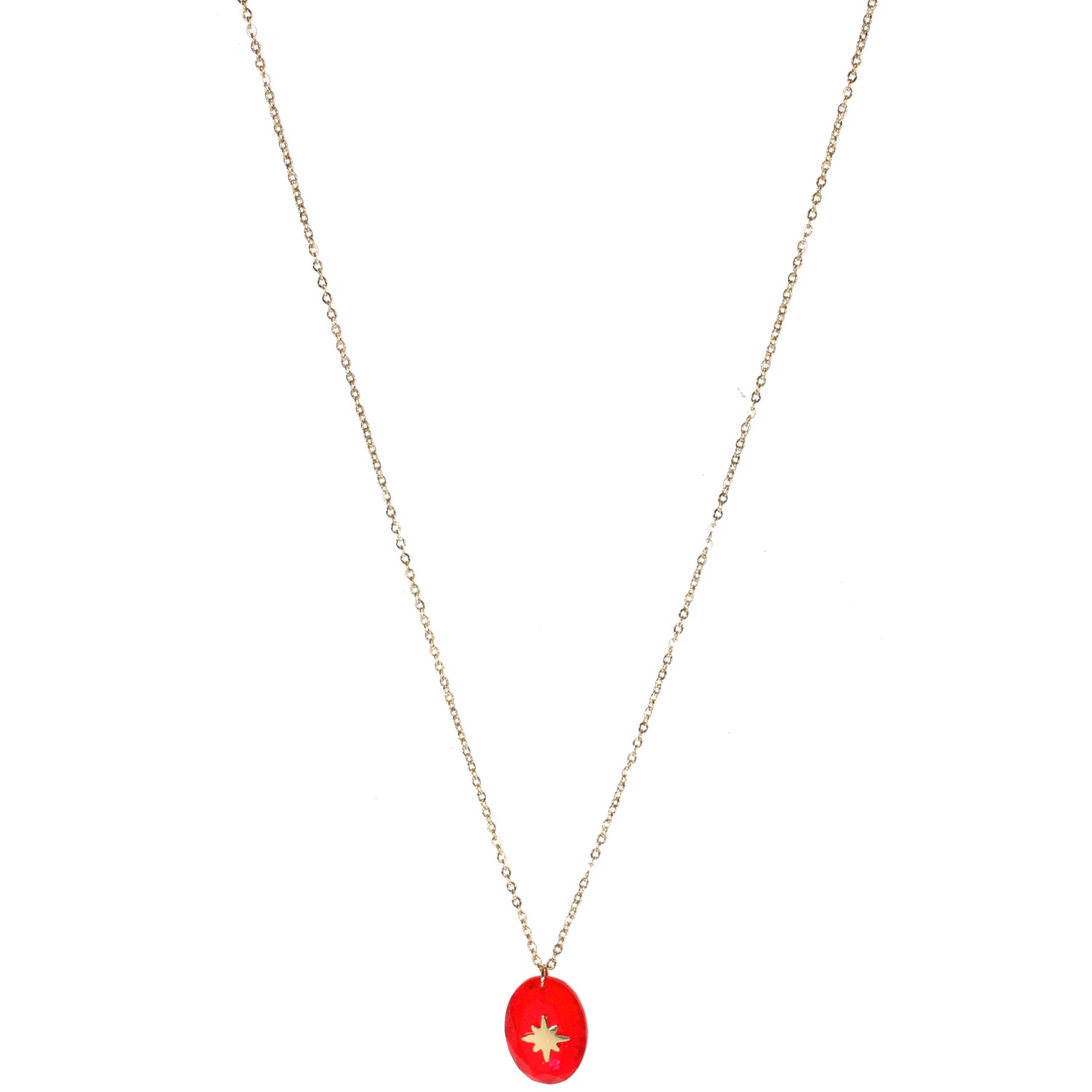 Description Collier en acier doré et pendentif en cristal de couleur avec motif étoile. Longueur 40+5 cm [Guide des tailles] Matière(s) Acier , Verre . L'acier utilisé dans la bijouterie existe sous plusieurs qualités. Nous utilisons principalement la qualité 316L, qualité qui est utilisée en chirurgie. Cet acier est donc inoxydable et reste très résistant. Fermoir Mousqueton À noter Pendentif 15x10 mm Couleur(s) dominante(s) Doré , Rouge Public Adolescent , Adulte . Genre Femme , Fille . Saison Indémodable . Thème(s) Nature . Cliquez sur une matière, un thème, une couleur ou une collection pour voir tous les articles associés.