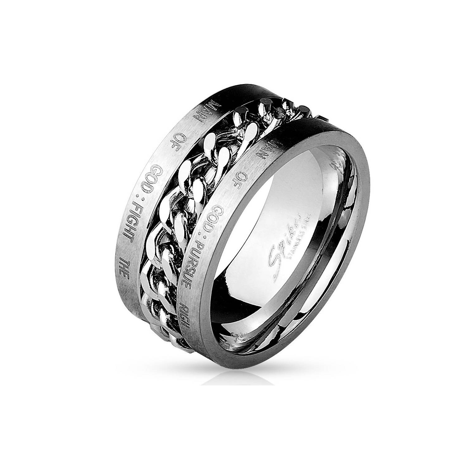 Bague en acier chirurgical 316L avec inscriptions bibliques.
