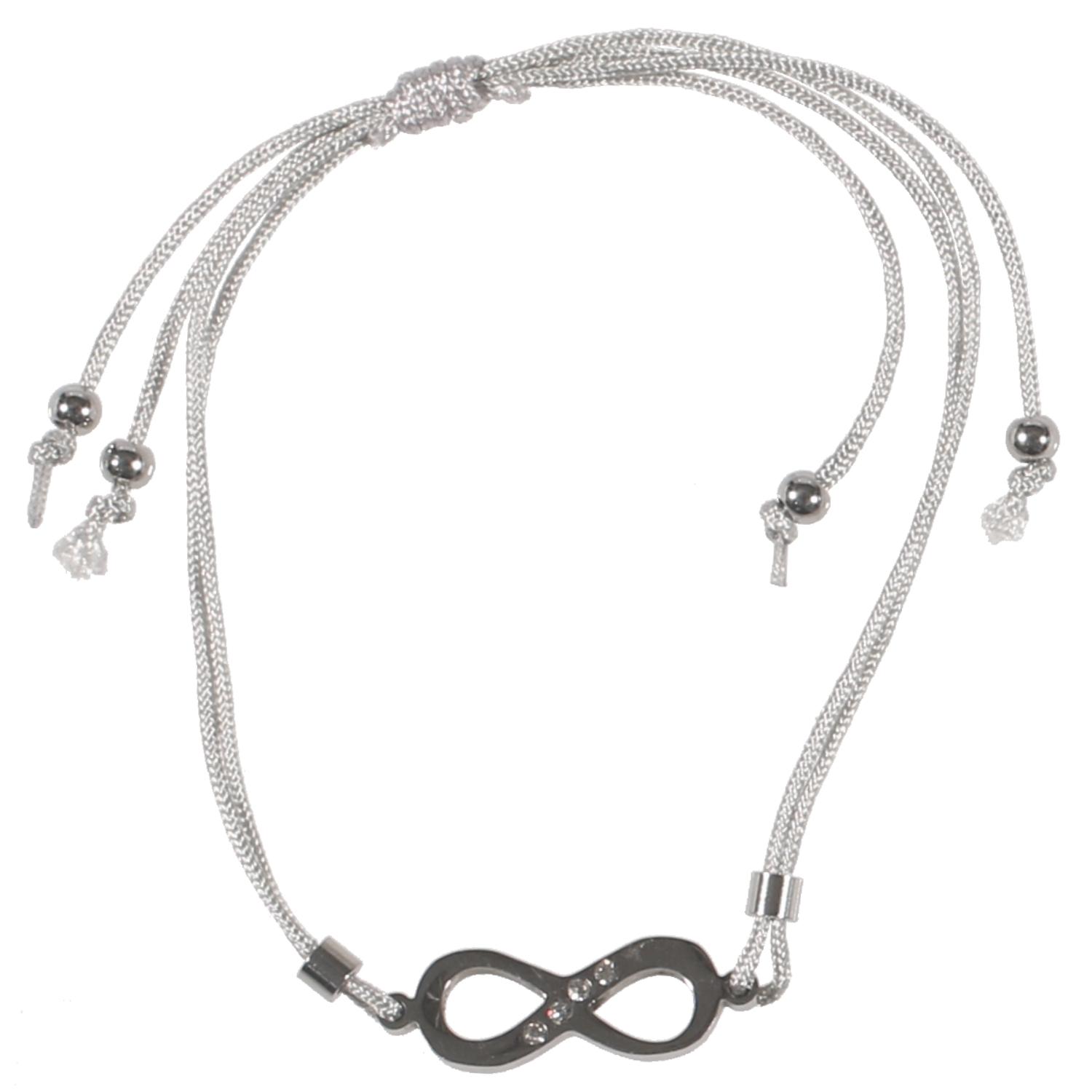 Bracelet fantaisie en métal argenté, textile et cristaux synthétiques.