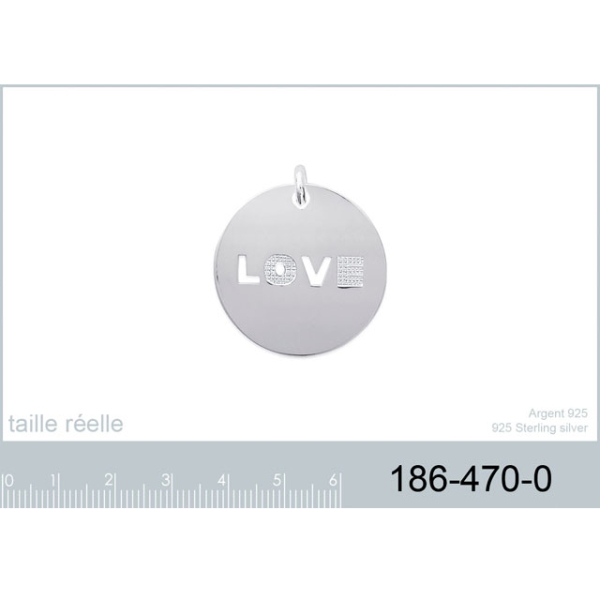 Pendentif en argent 925/000 et oxyde de zirconium. Love  Adulte Amour Femme Indémodable Message