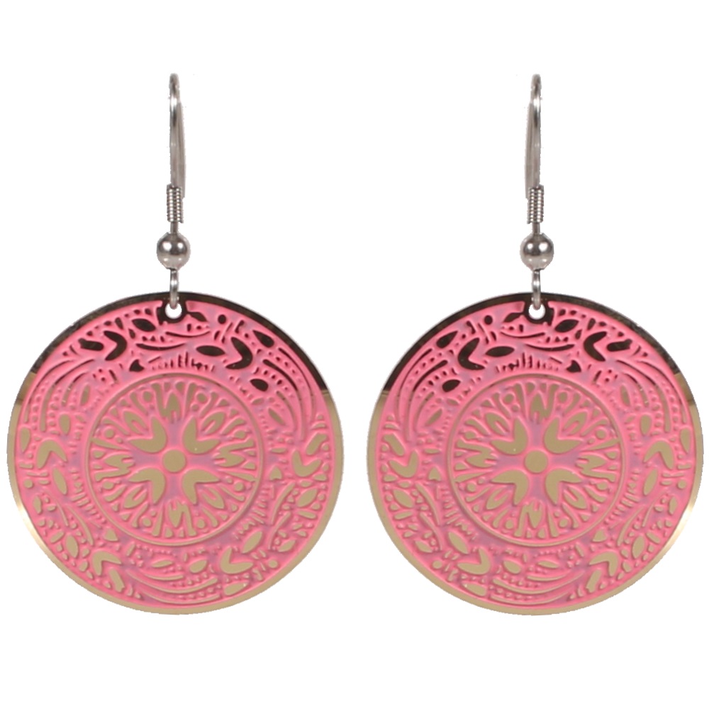Description Boucles d'oreilles en acier. Largeur 30 mm Hauteur 47 mm Matière(s) Acier . L'acier utilisé dans la bijouterie existe sous plusieurs qualités. Nous utilisons principalement la qualité 316L, qualité qui est utilisée en chirurgie. Cet acier est donc inoxydable et reste très résistant. Fermoir Crochets Couleur(s) dominante(s) Noir , Rose Public Adolescent , Adulte . Genre Femme , Fille . Saison Indémodable . Cliquez sur une matière, un thème, une couleur ou une collection pour voir tous les articles associés.