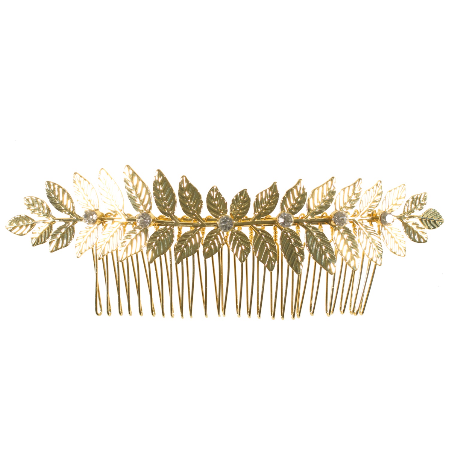 Peigne cheveux Branche de laurier en métal doré et cristaux synthétiques.
