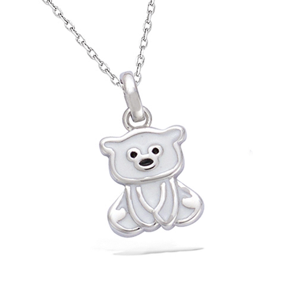 Pendentif Ourson en argent 925/000 rhodié et émail blanc.