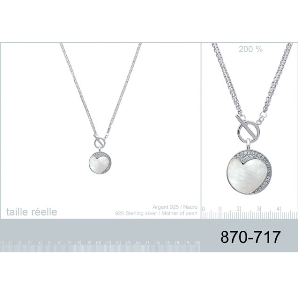 Collier en argent 925/000 rhodié avec coeur en nacre et oxyde de zirconium.