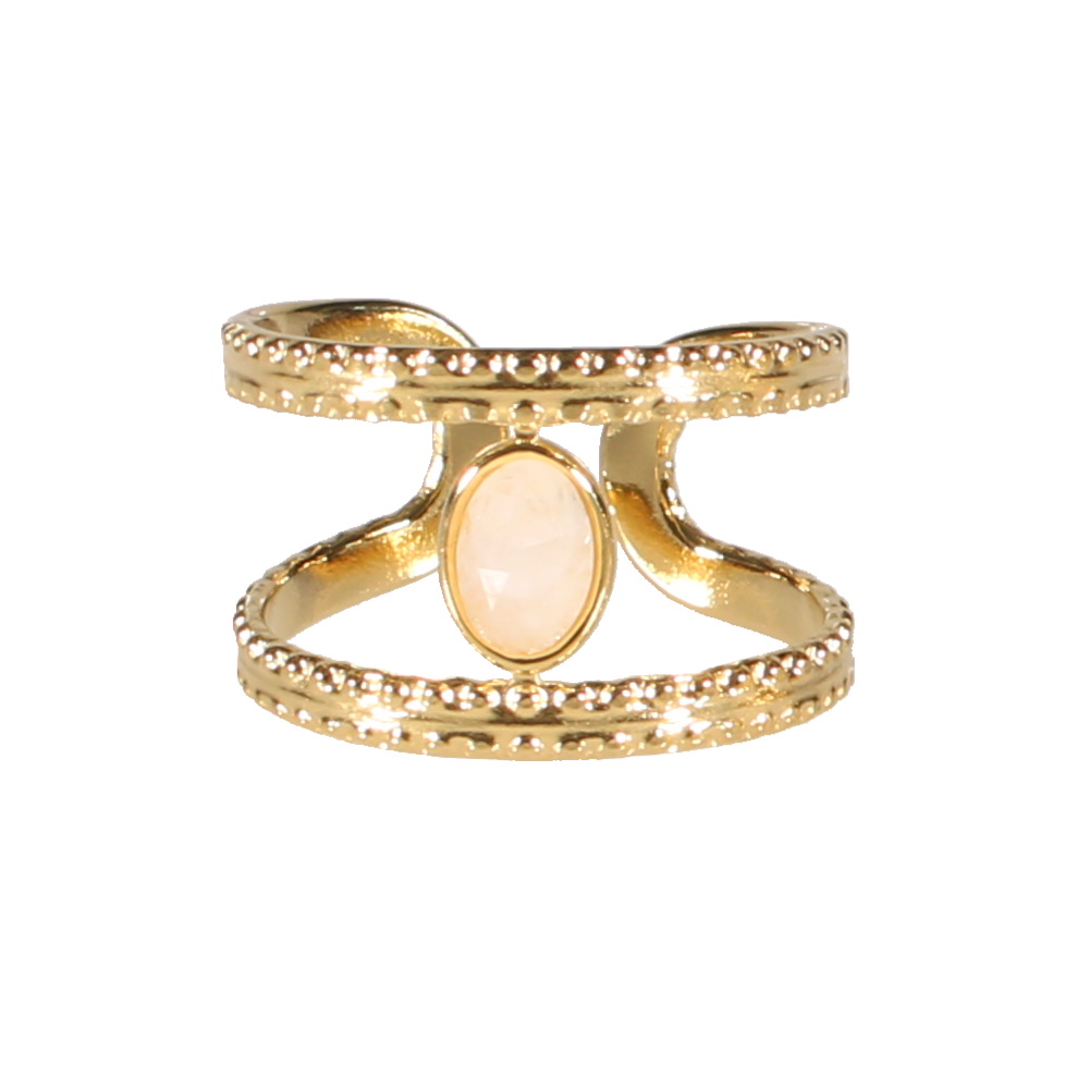 Bague double rangs en acier doré sertie d'une véritable pierre de lune.
