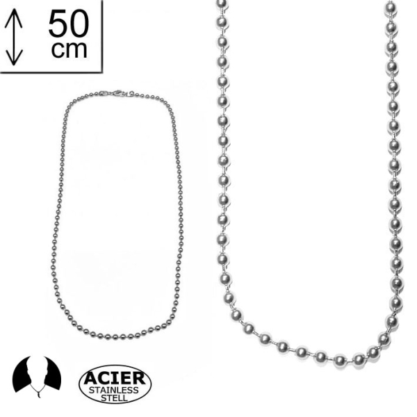 Description Chaîne en acier. Longueur 50 cm [Guide des tailles] Maille Boule Matière(s) Acier . L'acier utilisé dans la bijouterie existe sous plusieurs qualités. Nous utilisons principalement la qualité 316L, qualité qui est utilisée en chirurgie. Cet acier est donc inoxydable et reste très résistant. Fermoir Mousqueton Couleur(s) dominante(s) Argenté Public Adulte . Genre Femme , Homme , Mixte . Saison Indémodable . Collection Homme actuel Cliquez sur une matière, un thème, une couleur ou une collection pour voir tous les articles associés.