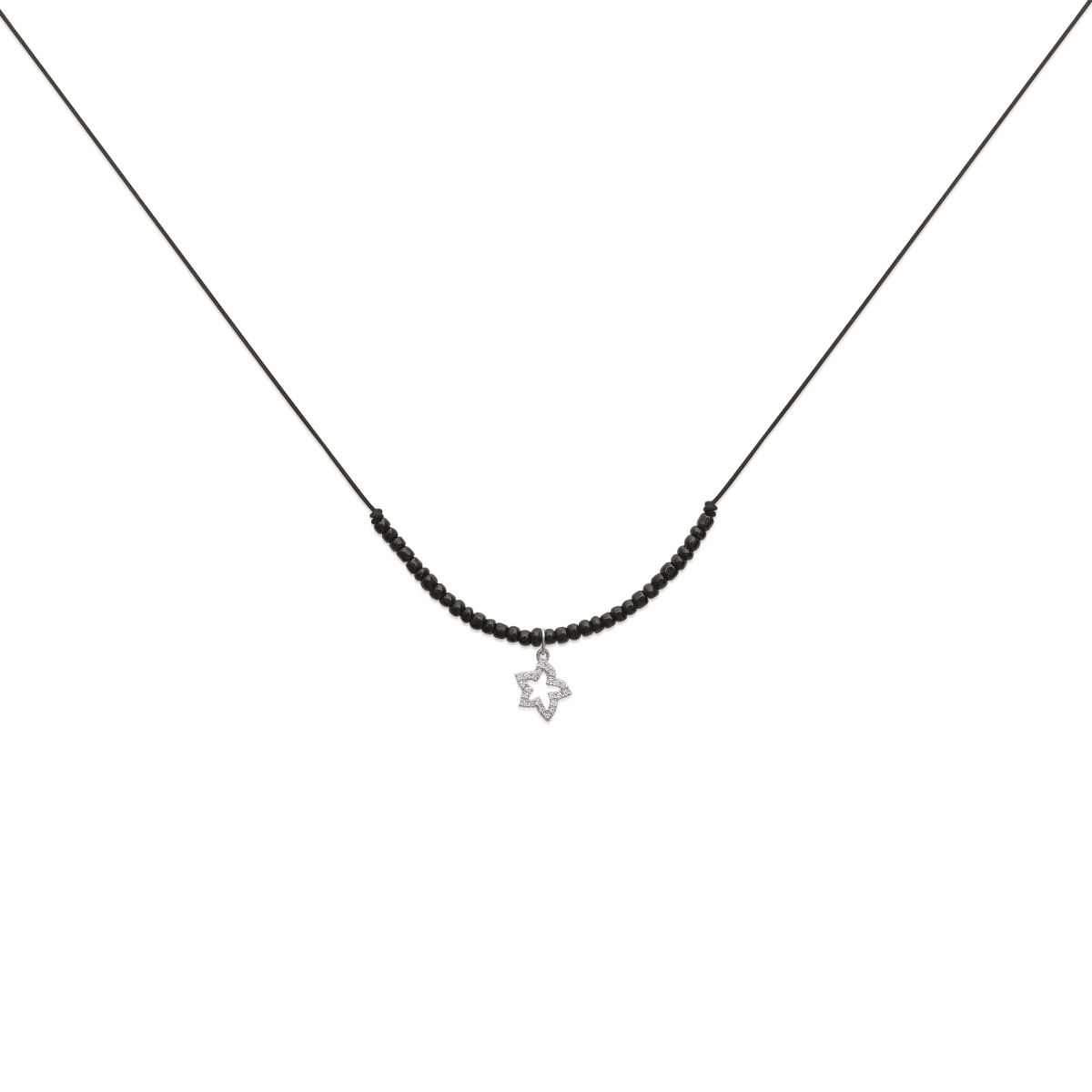 Collier en argent 925/000 rhodié, oxyde de zirconium et coton.