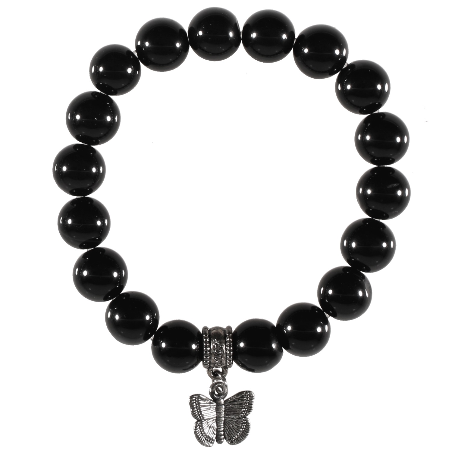 Bracelet élastique avec papillon en métal argenté et boules en pierre jade violet.<br/>L'obsidienne, pierre d'origine volcanique, agit comme un bouclier contre les énergies négatives et les influences néfastes.<br/>Pierre de l'équilibre, elle éliminera le stress et les tensions. Boule Elastique Papillon  Adolescent Adulte Animaux Femme Fille Indémodable