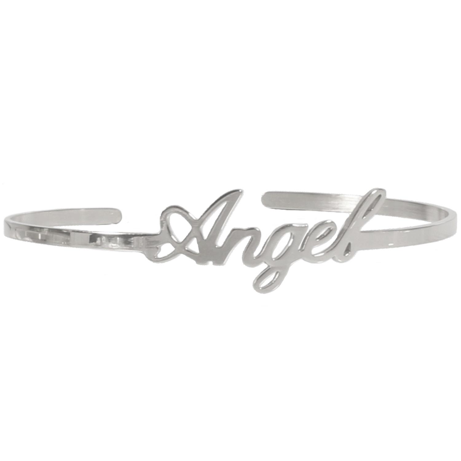 Bracelet jonc rigide en acier argenté.