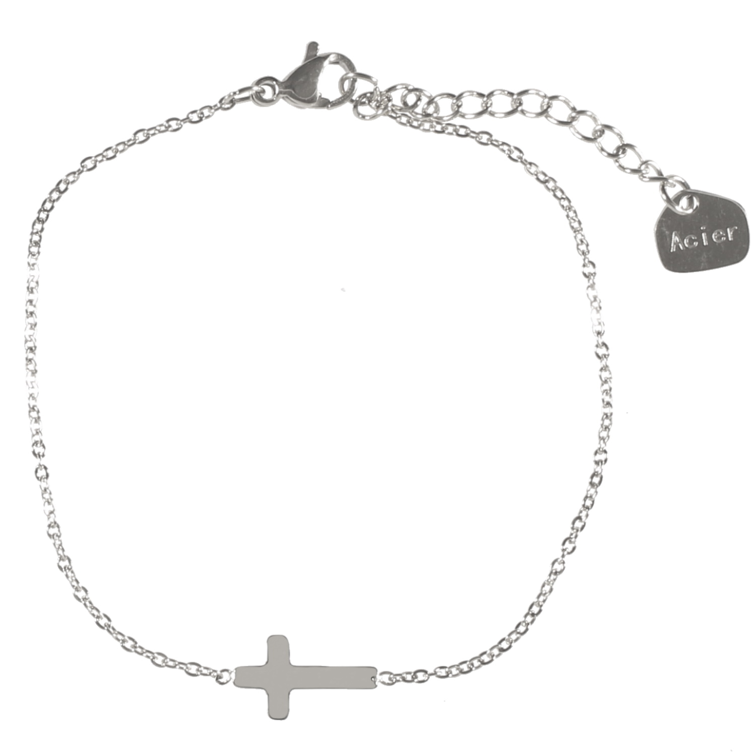 Description Bracelet composé d'une chaîne et d'une croix en acier argenté. Fermoir mousqueton avec 3 cm de rallonge. Cliquez sur une matière, un thème, une couleur ou une collection pour voir tous les articles associés.