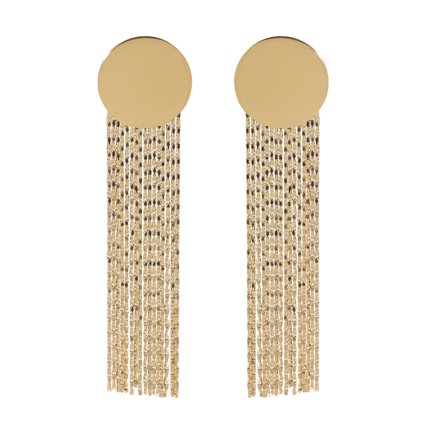 Description Boucles d'oreilles pendantes composées d'une pastille ronde et de franges en acier doré. Largeur 18 mm Hauteur 70 mm Matière(s) Acier . L'acier utilisé dans la bijouterie existe sous plusieurs qualités. Nous utilisons principalement la qualité 316L, qualité qui est utilisée en chirurgie. Cet acier est donc inoxydable et reste très résistant. Fermoir Tiges poussettes Couleur(s) dominante(s) Doré Public Adolescent , Adulte . Genre Femme , Fille . Saison Indémodable . Cliquez sur une matière, un thème, une couleur ou une collection pour voir tous les articles associés.