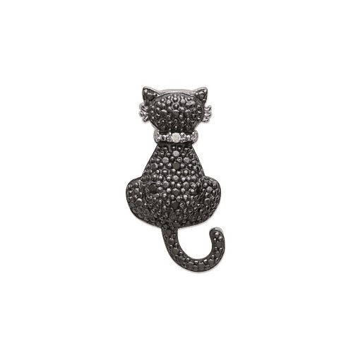 Pendentif chat en argent 925/000 rhodié et pierres synthétiques.