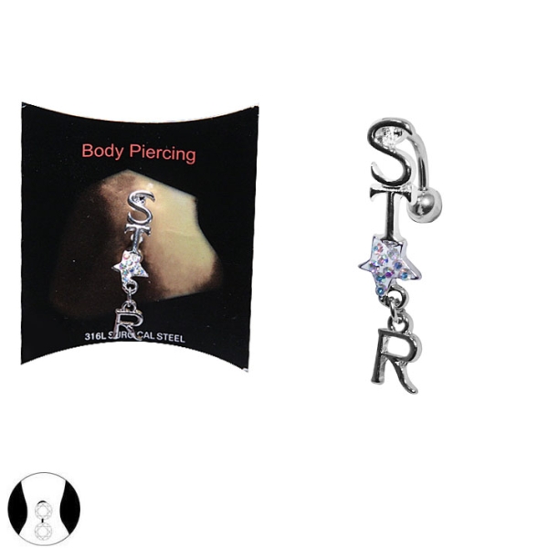 Piercing en acier chirurgical et cristal.  Adulte Femme Indémodable Message