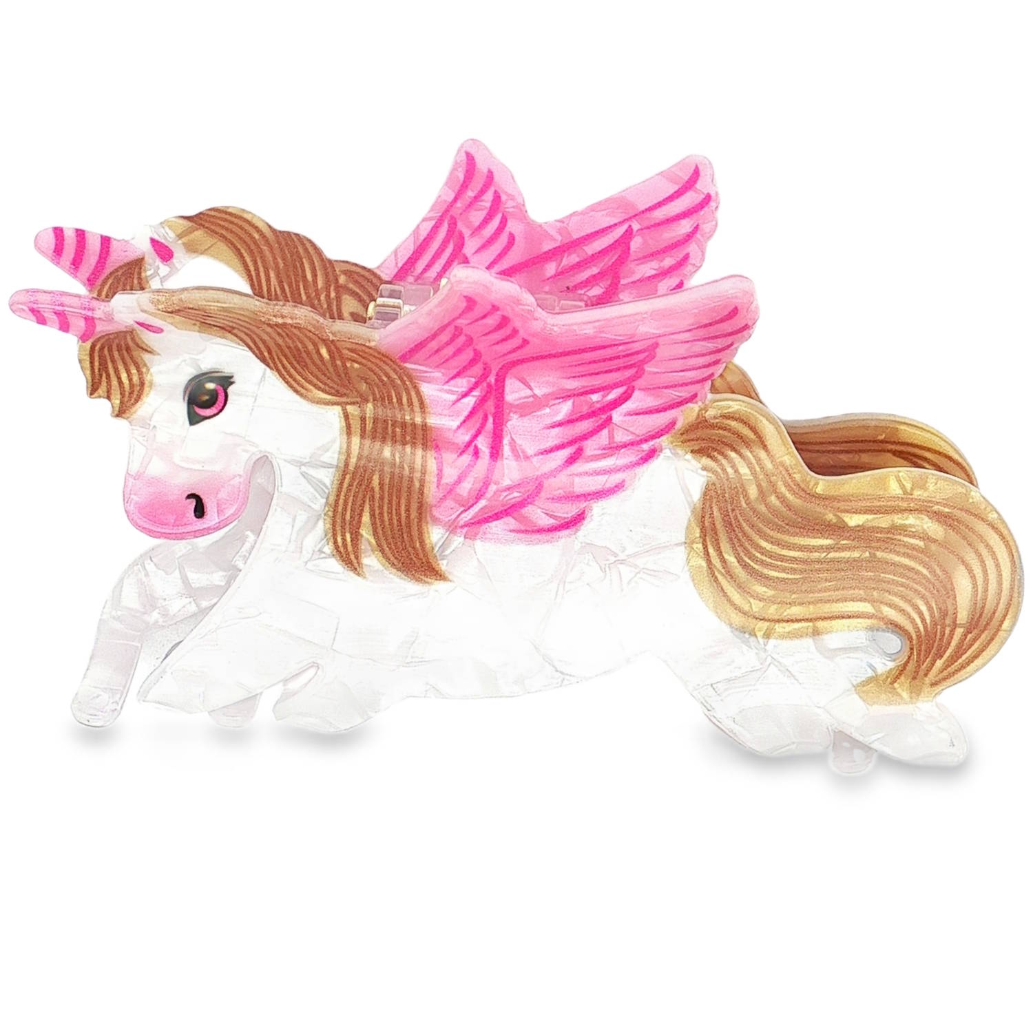 DescriptionMagnifique pince crabe pour cheveux représentant une licorne ailée de couleurs vives et nacrées.Cliquez sur une matière, un thème, une couleur ou une collection pour voir tous les articles associés.