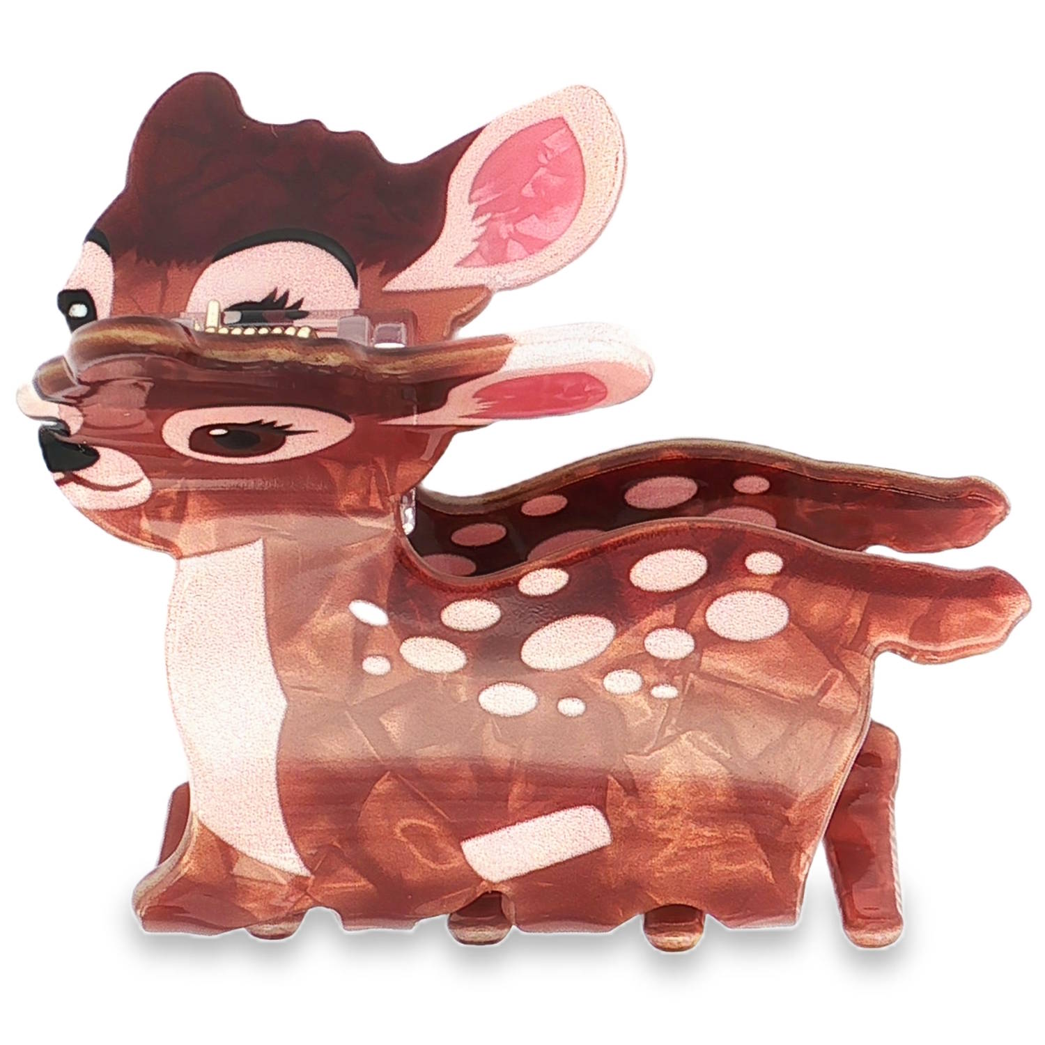 DescriptionMagnifique pince crabe pour cheveux représentant une faon de couleurs vives et nacrées.Cliquez sur une matière, un thème, une couleur ou une collection pour voir tous les articles associés.