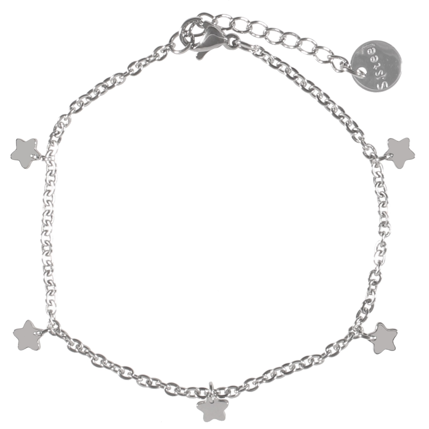 Description Bracelet avec étoiles pendantes en acier argenté. Longueur 16+2 cm [Guide des tailles] Largeur 5 mm Matière(s) Acier . L'acier utilisé dans la bijouterie existe sous plusieurs qualités. Nous utilisons principalement la qualité 316L, qualité qui est utilisée en chirurgie. Cet acier est donc inoxydable et reste très résistant. Fermoir Mousqueton Couleur(s) dominante(s) Argenté Public Adolescent , Adulte . Genre Femme , Fille . Saison Indémodable . Thème(s) Nature . Cliquez sur une matière, un thème, une couleur ou une collection pour voir tous les articles associés.